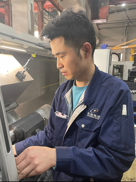 周川是東星集團(tuán)制造三部花鍵軸線班長,一個標(biāo)準(zhǔn)的90后小伙子。2011年,他作為優(yōu)秀畢業(yè)生入職東星集團(tuán)。項目的歷練、公司的培養(yǎng),讓他逐步從一名普通員工成長為花鍵軸線的班長。從剛踏出學(xué)校大門時的青澀,到現(xiàn)在工作崗位上的成熟,這期間有碩果累累的喜悅;有與同事協(xié)同攻關(guān)的艱辛;也有遇到困難和挫折時的惆悵。
