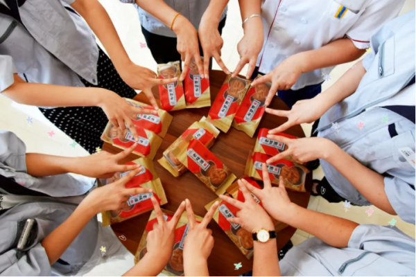 喜迎中秋佳節(jié) 中秋節(jié)將至,為了表達對員工們的真誠祝福和關(guān)懷,9月8日上午,集團公司總經(jīng)理助理王建全、宮明杰,人力資源部部長高克忠,工會主席李金霞一行帶隊走訪各部門、車間,將公司工會為全體員工準備的傳統(tǒng)手工月餅親自發(fā)放到了員工手中。 現(xiàn)場員工表示,感謝公司在發(fā)放了過節(jié)福利費之外,還專門為大家訂制了節(jié)日月餅。小小的月餅情誼深厚,體現(xiàn)了公司對員工的特別心意,使員工增強了歸屬感和認同感。一些員工在“嘗鮮”后紛紛反饋稱,月餅香甜可口,能回憶起小時候的味道,會和家人共同分享。