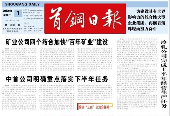 在8月1日發(fā)表的日?qǐng)?bào)(總第6037期)頭版,刊登了題目為《正確的發(fā)展戰(zhàn)略是實(shí)現(xiàn)企業(yè)長遠(yuǎn)發(fā)展的法寶》的文章,廣泛宣傳、介紹東星集團(tuán)在開展“三創(chuàng)”活動(dòng)中的典型經(jīng)驗(yàn),總公司網(wǎng)站同日轉(zhuǎn)載。