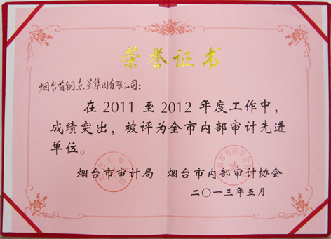 近日,我公司由于內審工作成績突出,被煙臺市審計局、煙臺市內部審計協(xié)會評為2011至2012年度全市內部審計先進單位。