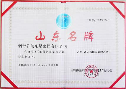 “東星”注冊(cè)商標(biāo)的銷軸產(chǎn)品獲得山東省名牌產(chǎn)品稱號(hào)