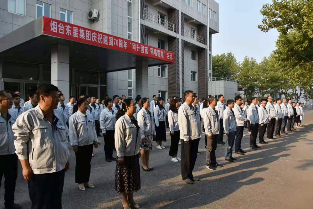本報(bào)訊:9月30日早8點(diǎn),煙臺東星集團(tuán)有限公司組織了慶祝建國70周年“同升國旗 同唱國歌”活動,120名員工代表參加了本次活動。活動在《我和我的祖國》的歌聲中拉開帷幕,員工們個(gè)個(gè)激情澎湃,飽含深情。升國旗儀式莊重大氣,員工們向國旗行注目禮。大家十分珍視這一寶貴的機(jī)會,同聲齊唱,共慶偉大祖國70華誕。(文/黨群工作部/李金霞)