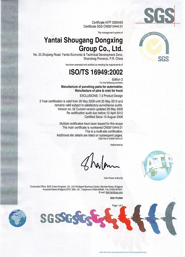 適宜性、有效性、充分性能得到較好保證。給予頒發(fā)ISO/ TS16949認(rèn)證證書。